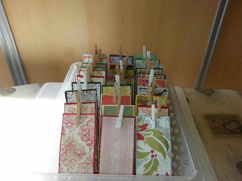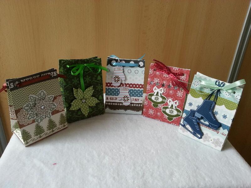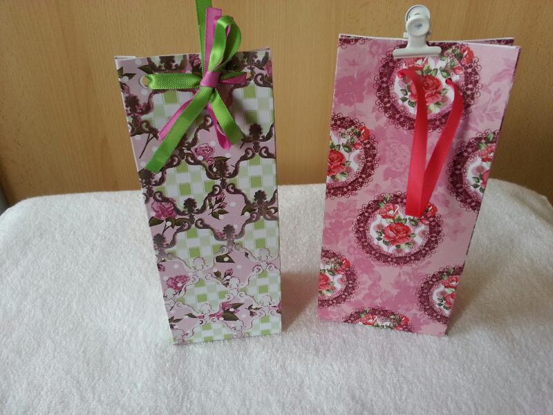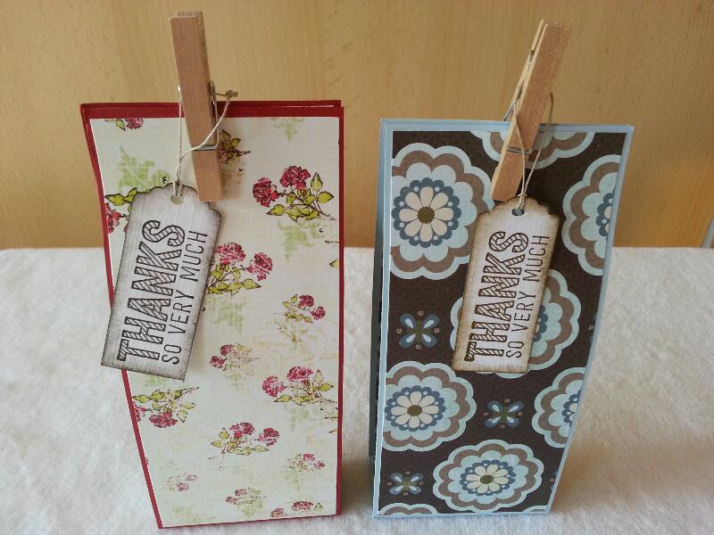 Hiervoor heb ik allerlei papier gebruikt om door de restanten heen te komen, binnen en buitenkant met design papier beplakt en met de stempel Simply Wonderful van SU in de kleuren Crum Cake, Early Espresso gestempeld met de inkten van SU.